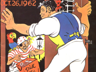 Ahead of the Patriots-Raiders match-up in Mexico this Sunday, we’re taking a look back at some of cartoonist Phil Bissell’s game day covers from the 1960’s, which are currently on display in our changing exhibit gallery as a part of “The Birth of Pat Patriot.”